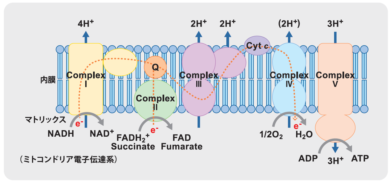 酸素へ電子を渡して水を生成 | 最終電子受容体、ATP産生に直結、酸素依存性 | アルツハイマー病、 パーキンソン病 |