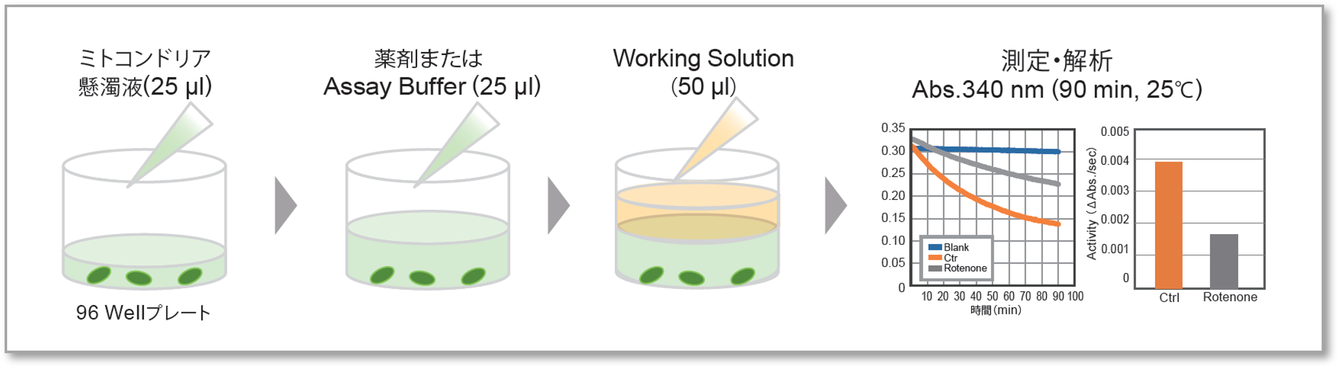 - 分画ミトコンドリアのComplex I活性が測定可能