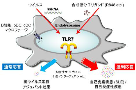 Toll-like receptor 7(TLR7)をはじめとする核酸認識センサーはウイルス由来の核酸を感知することで免疫応答を誘導し、私たちの体を感染から守っています。一方で、これらセンサーの過剰活性化は自己免疫疾患や自己炎症性疾患などのヒト疾患につながることも明らかになってきました。本セミナーでは、核酸認識センサーの疾患における役割を解説するとともに、最近判ってきた「核酸代謝による核酸認識センサーの制御」という新たな視点を紹介したいと思います。