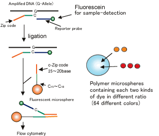 Fig.4 Barcode-making with microspferes containing fluorescent dyes