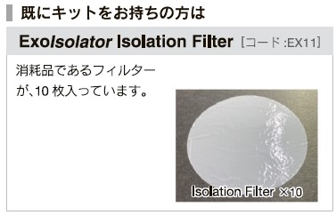 Exolsolator Exosome lsolation Kitは、培養上清中に分泌されたエクソソームをフィルトレーションの操作だけで簡単に、短時間で回収することができるキットです。