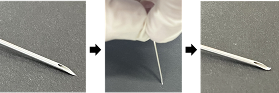先端を曲げた注射針の準備