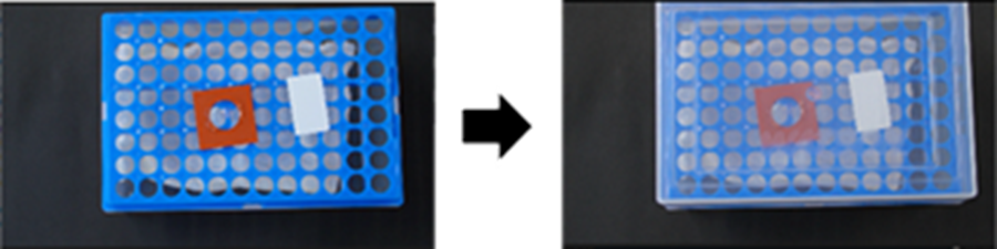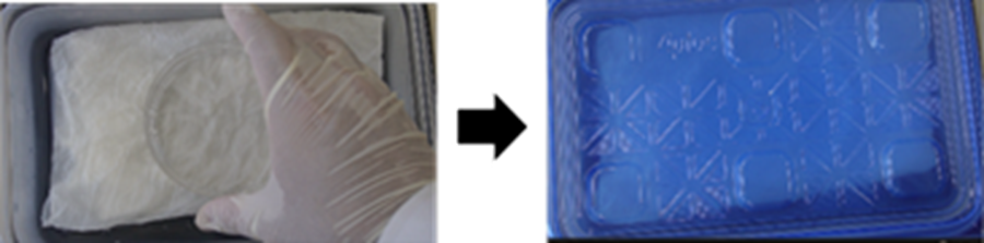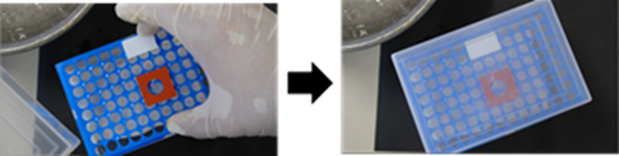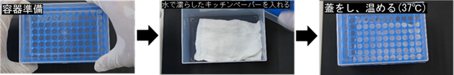 1 mlマイクロチップケースの底に水で濡らしたキッチンペーパーを敷いた後、蓋をし、37℃インキュベーター内に入れる。