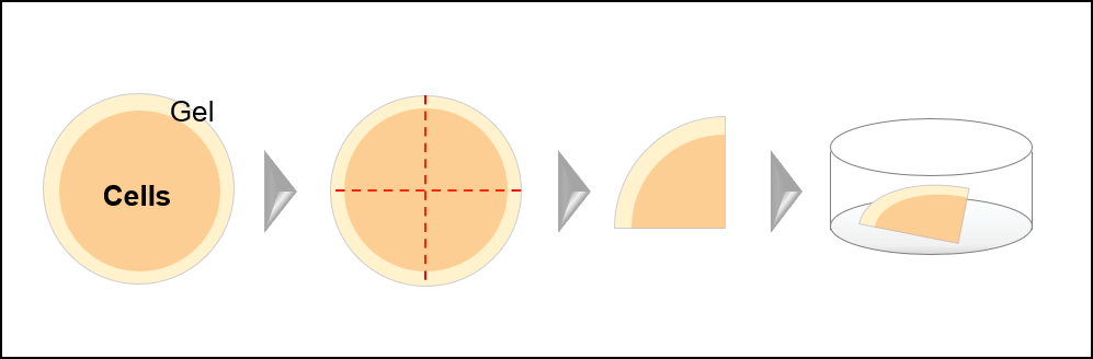 - 膨張したゲルを下記図のようににカミソリやメス等を使用してカットする。